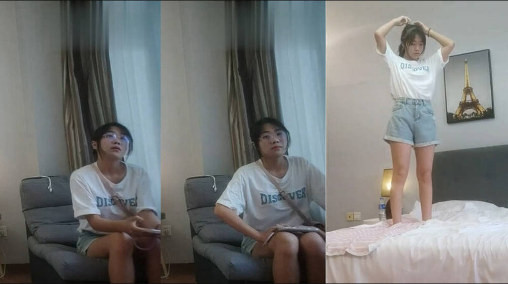 兩千約啪青春援交學生妹,戴個眼鏡很文靜,壹頓大戰結束站落地窗前暢談未來
